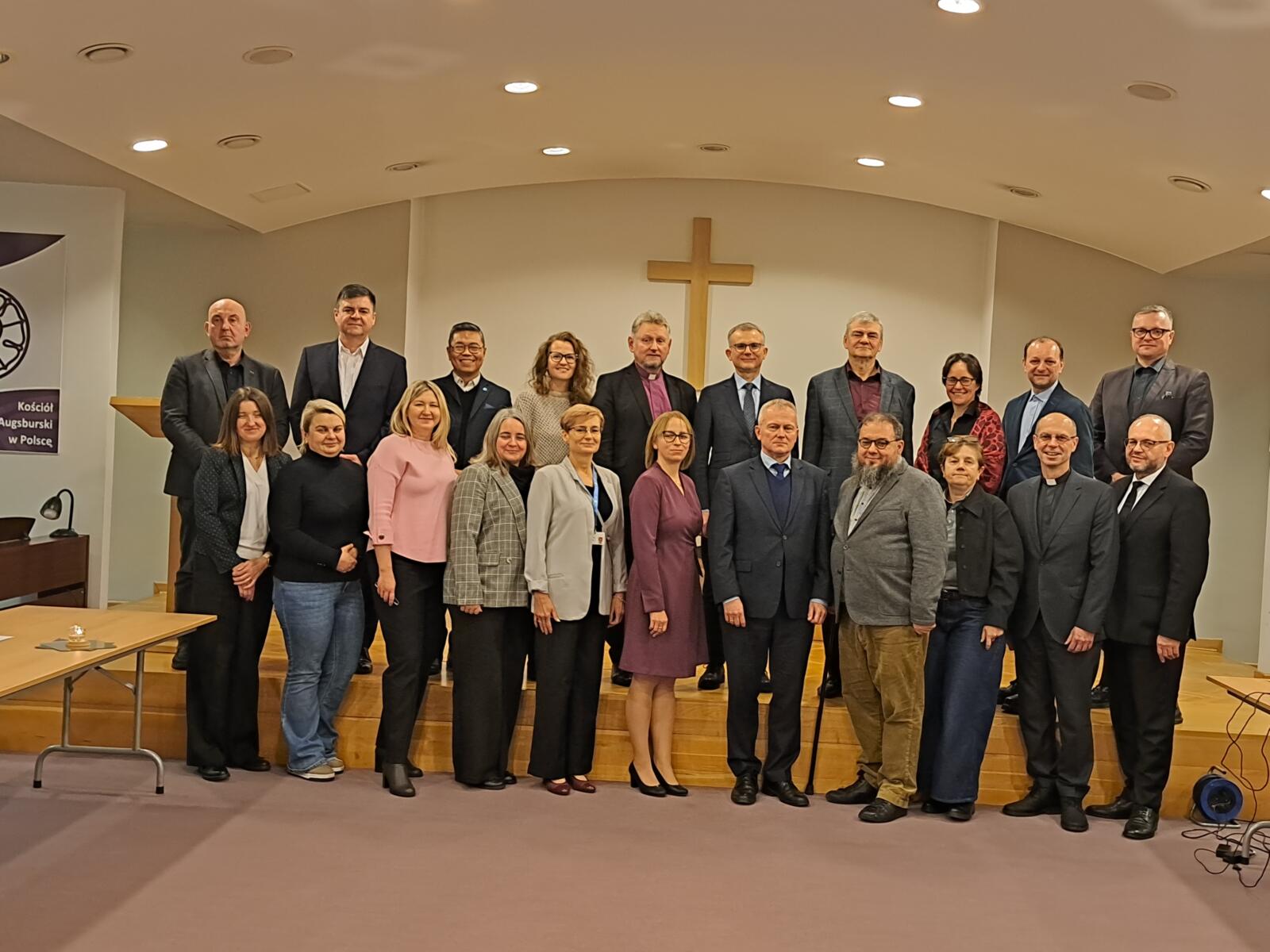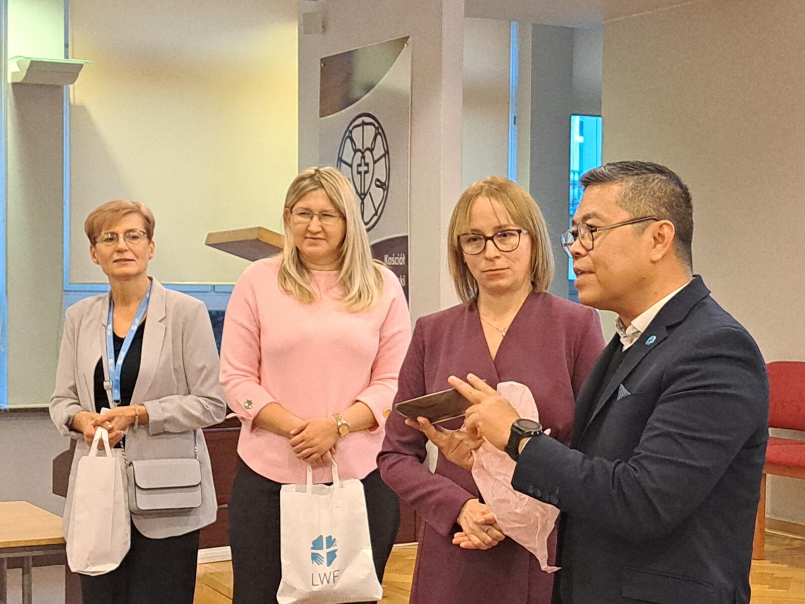 From the Lutheran World Federation were present: online, Rev. Dr Anne Burghardt, General Secretary of the LWF, and Maria Immonen, Director of World Service, and, on site in Warsaw, Rev. Dr Ireneusz Lukas, Secretary for Europe, and Allan Calma, humanitarian coordinator in World Service. From Poland, Bishop Jerzy Samiec and the bishops of all dioceses were present, together with Diakonia Polska, a member of the LWF Council, pastors of the parishes hosting community centers, and staff of the LWF Foundation, including its current director, Dr Iwona Baraniec.